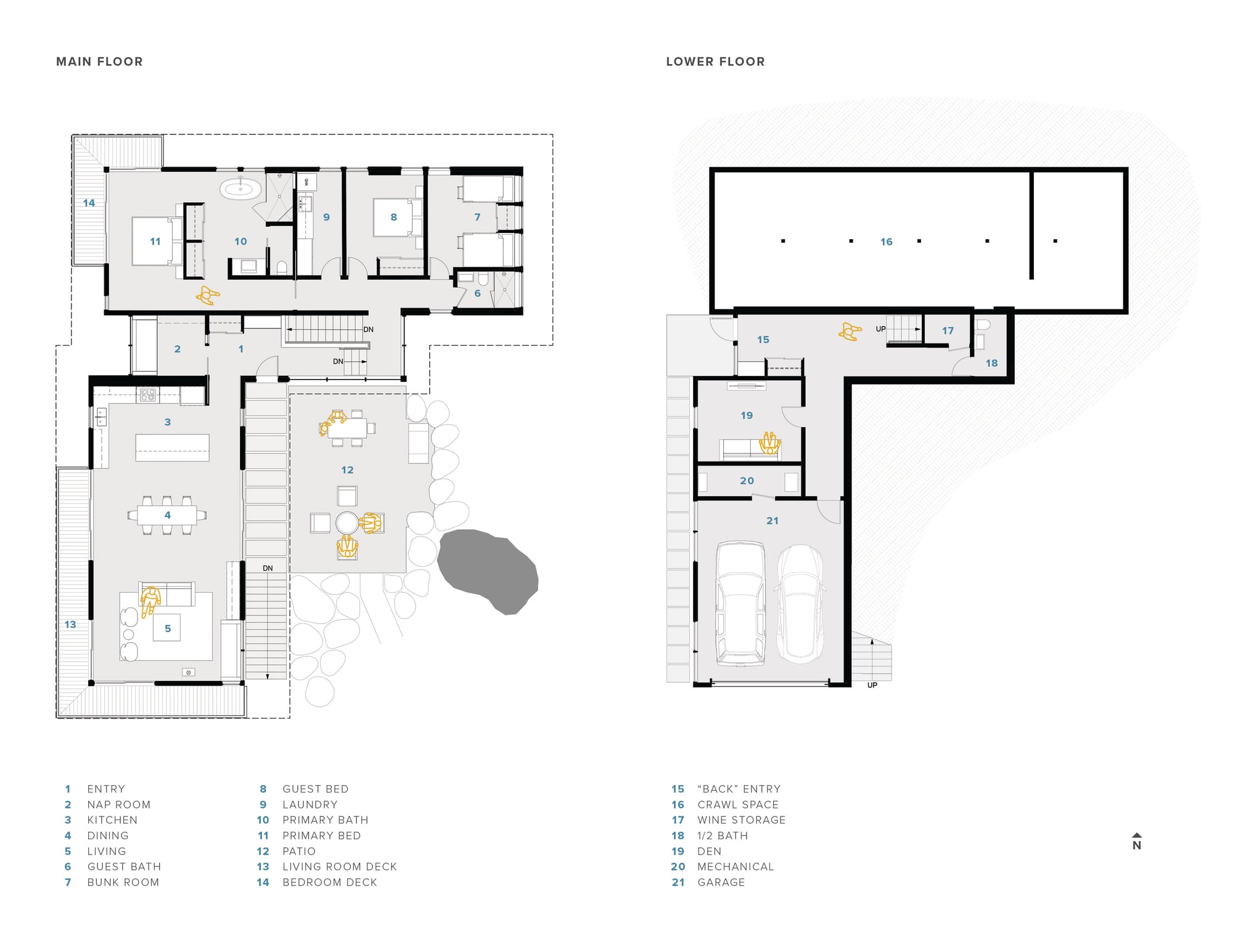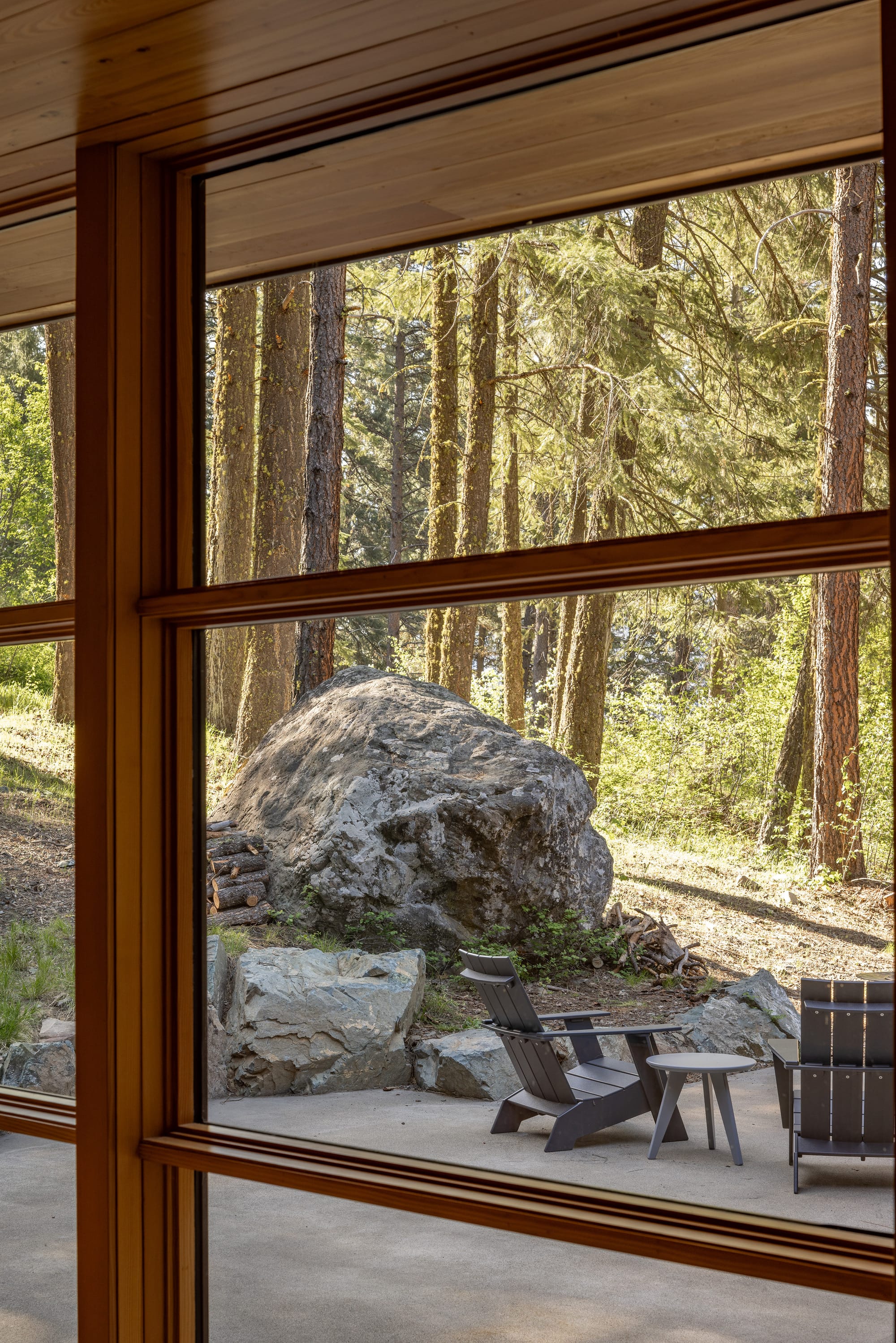 The 2400 sf Hillside House sits comfortably on a forested slope strewn with enormous boulders. The owners entrusted us with their dream of a comfortable home for an active family of five.